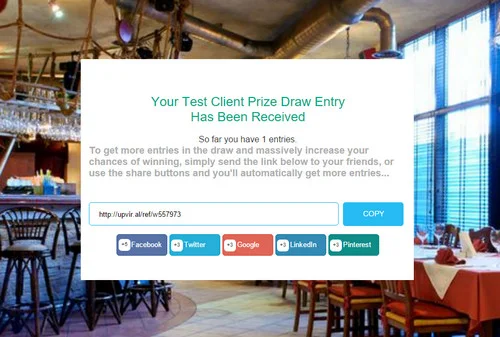 Most people want to increase their chances of winning and so use the button to share the draw. This causes the viral effect; as people share the draw to increase their chances, more people will enter and share the draw to increase their chances…and so on.